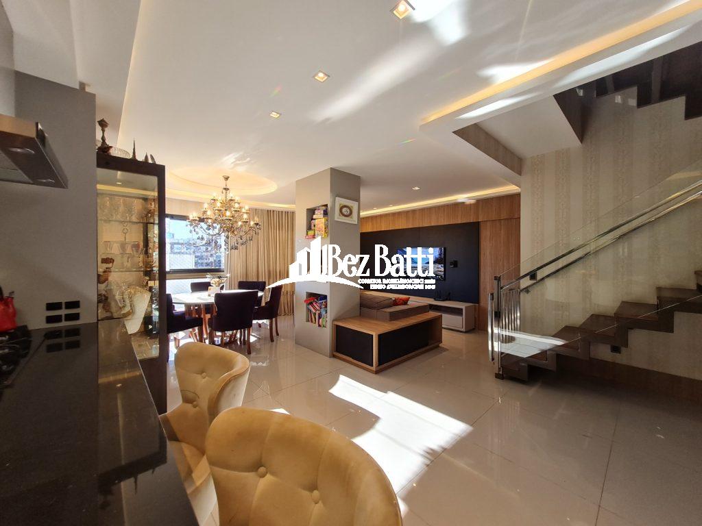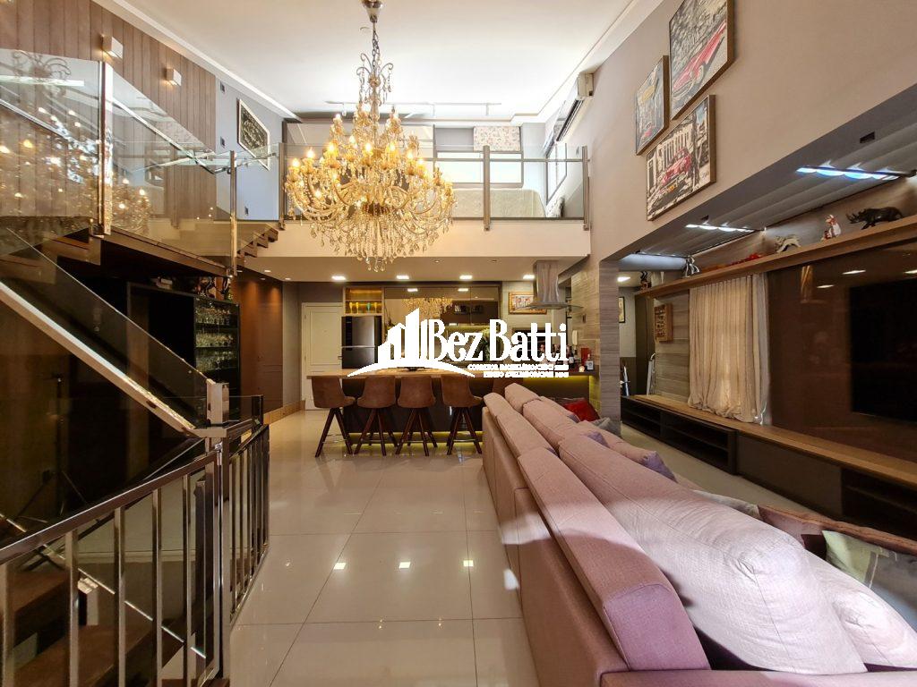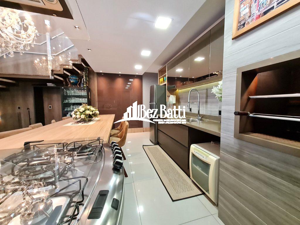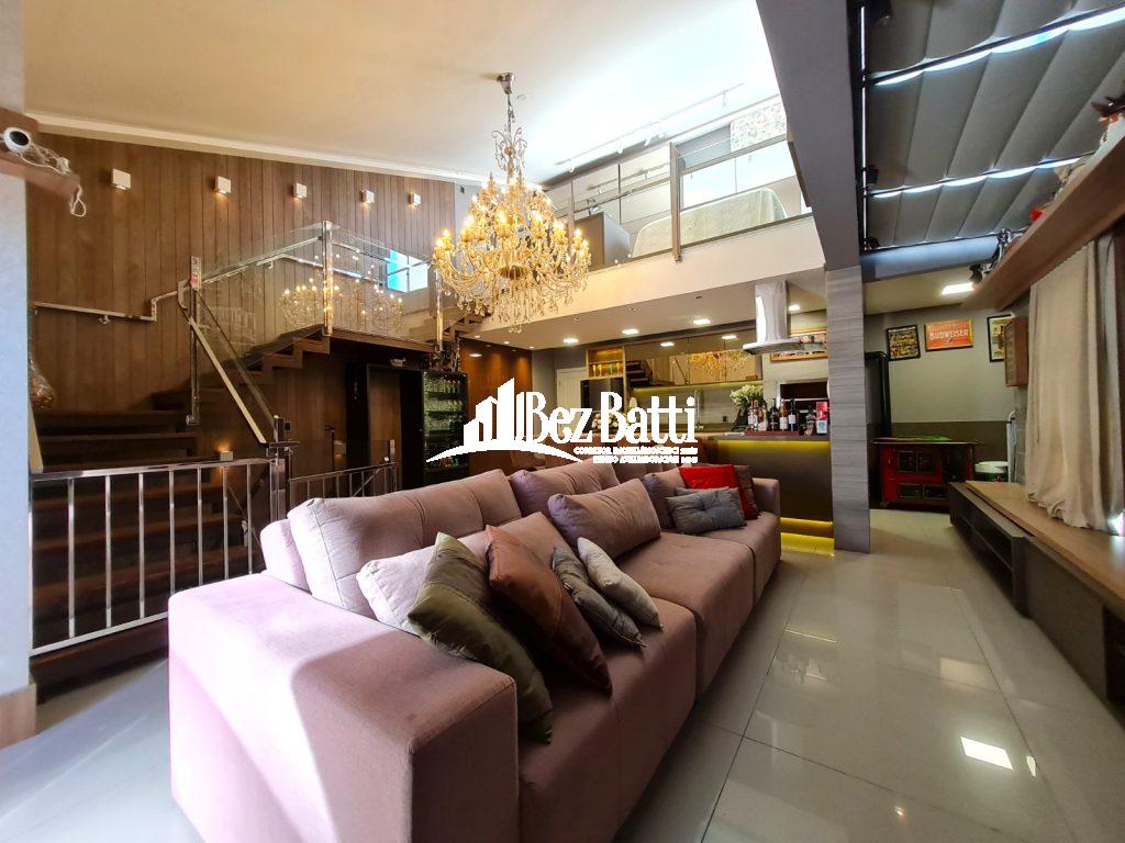 Primeiro Piso: 3 (três) quartos, sendo 2 suítes, sala de TV, sala de estar, cozinha, banheiro social, lavanderia. Segundo Piso: Espaço Gourmet, fogão a Lenha, lavabo, piscina, mezanino, churrasqueira a carvão